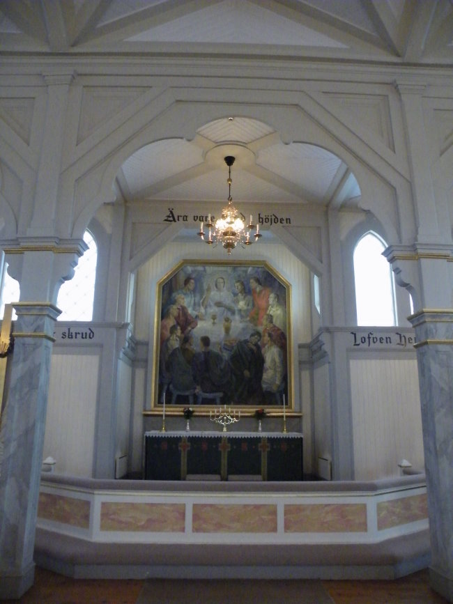 Unser nächstes Etappenziel war Härnösand. Bis dahin hatten wir 345 km zu fahren. Es ging auf der E04 zunächst zügig Richtung Süden. Spaß machte es nicht, da die Straße auto-bahnähnlich ausgebaut ist und relativ viel Verkehr war. Deshalb verließen wir in Sundsvall die E 04 und fuhren auf Nebenstraßen weiter. Das kostete zwar Zeit, bereitete aber viel mehr Fahrfreude, da wir wieder durch eine tief verschneite Landschaft auf schneebedeckten Straßen fahren konnten.