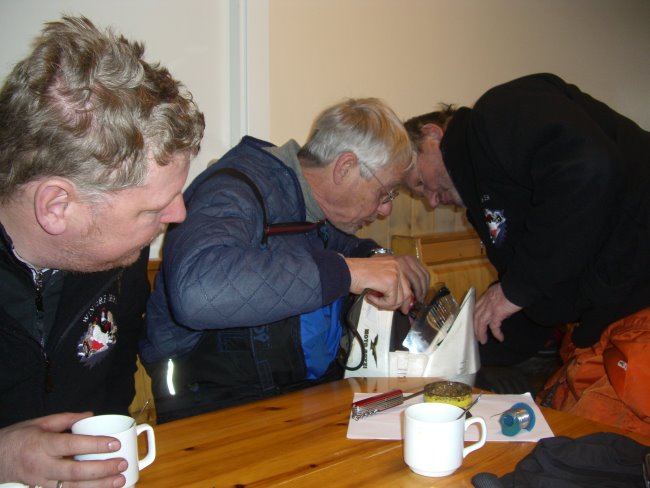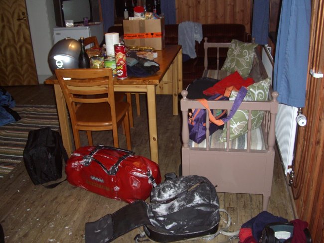 Endlich konnten wir alle Lebensmittel, Getränke usw. auspacken und auftauen. In unserer Hütte sah es zunächst aus, wie in einem Gemischtwarenladen. Allerdings nur kurze Zeit, dann hatten wir Ordnung geschaffen.