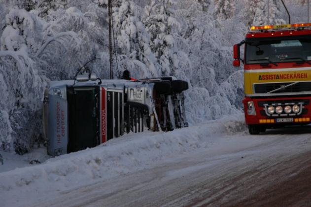Die Tücke der verschneiten Straßen. Man sieht nicht, wo der Straßengraben beginnt.