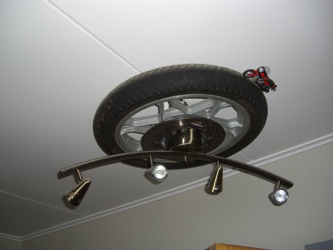 Stilgerechte Flurbeleuchtung eines Guzzi-Fahrers