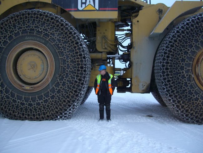 Sehr schöne Schneeketten, Thorsten wirkt mit über 1,90 m recht zierlich