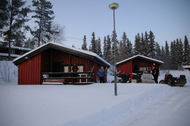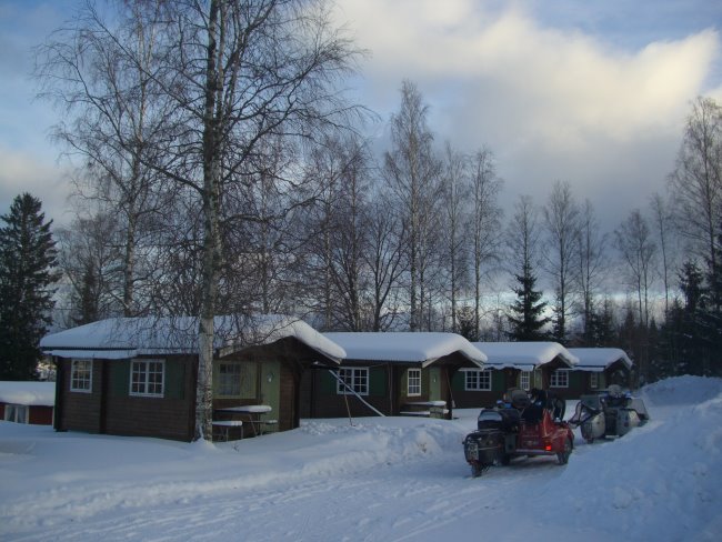Gegen 11:00 h starteten wir bei nur noch 10 Grad minus und trafen nach einer Strecke von 310 km in Skellevtea gegen 17:00h ein, wo wir auf einem sehr schönen Campingplatz eine Stuga mieten konnten.