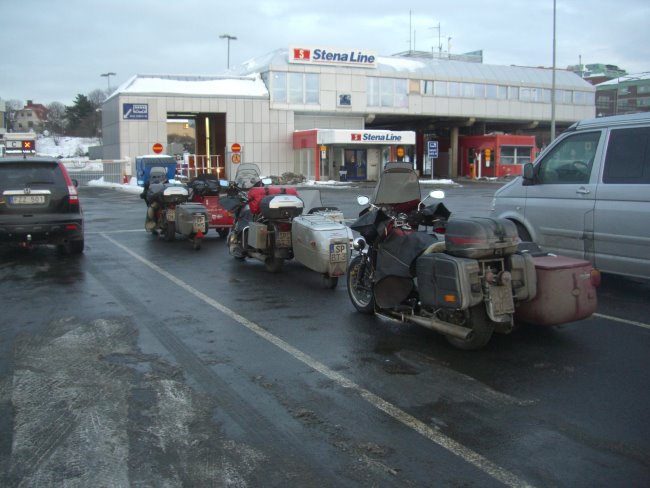 Bei unserer Ankunft in Lidköpping hatte ich versehentlich mein Standlicht angelassen, was mir aufgrund der total verdreckten Lampen nicht aufgefallen war. Nun war die Batterie total leer. Mittels Starthilfekabel war das Problem aber schnell behoben und wir konnten die letzten 136 km nach Göteborg in Angriff nehmen. Gegen 14:30 h trafen wir am Fährterminal ein.