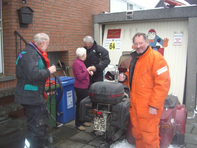 Kurzerhand wurde das Abschleppseil aktiviert und das Gespann nach Frankenthal geschleppt. Die Ursache für das Problem war bald gefunden. Die Salzlake auf den Straßen hatte ein Elektrikproblem hervorgerufen, was bei Holger mit viel WD 40 behoben wurde.