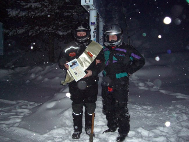 Dann überreichten wir ihm eine Urkunde, mit der er in die hartgesottene Gilde der Winterfahrer endgültig aufgenommen wurde.
