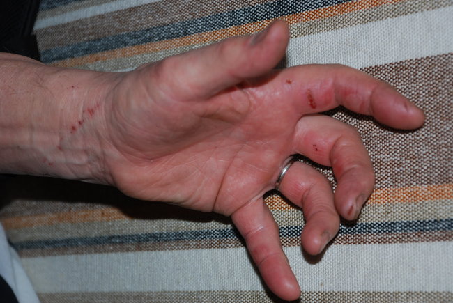 Eiskaltes Werkzeug verursacht Blasen an den Händen