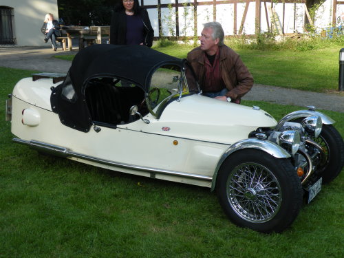 Als Highlite hatte der Museumschef, Hermann Layher, seinen originalen Morgan-Threewheeler bereitgestellt. Classik und Moderne lagen so dicht beieinander.