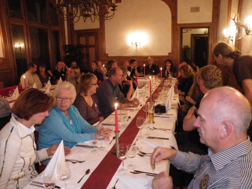 Im Burghof hatte man für uns im Schutz der Burgmauern eine lange Tafel gedeckt. Bei mediterranen Verhältnissen und romantischer Beleuchtung haben wir bis weit nach Mitternacht die Zeit für gute Gespräche genutzt.