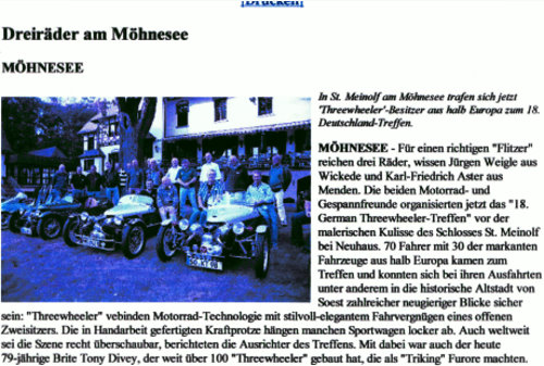 Am Treffenwochenende waren insgesamt 52 Threewheeler vor Ort. So ein großes German-Threewheeler-Treffen mit Teilnehmern aus Deutschland, Holland, England und Schottland gab es noch nie.